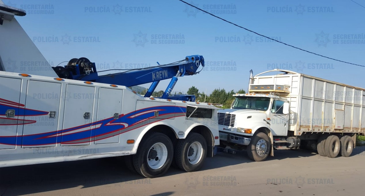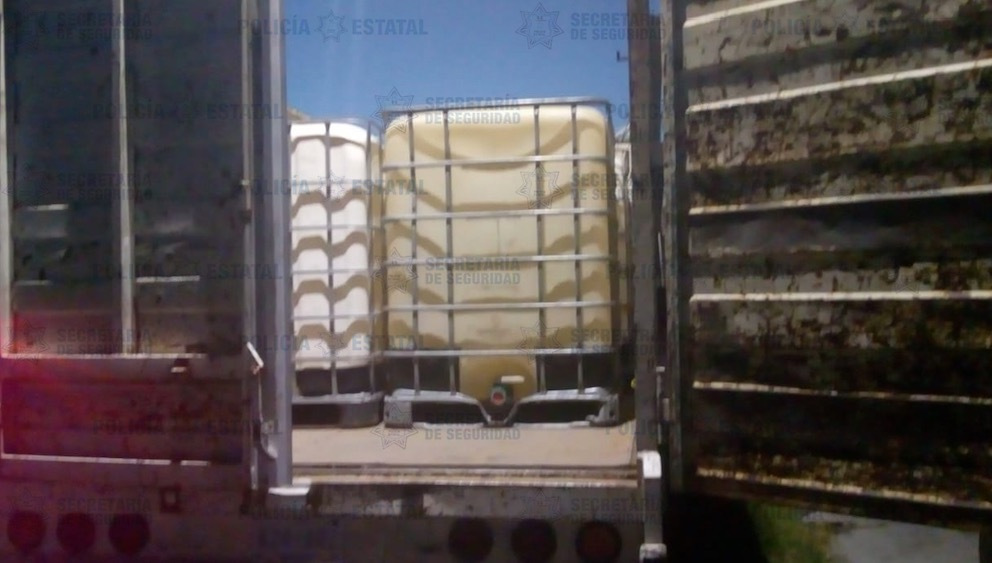 Un camión tipo Torton, marca International, con láminas del Estado de Guanajuato, color blanco, pero con reporte de robo vigente del pasado 30 de junio, también tenía en la batea dos contenedores de cinco mil litros cada uno, también vacíos.