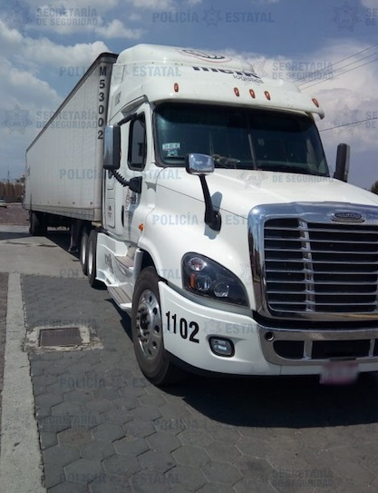 Personal adscrito a la Dirección General de Combate a Robo de Vehículos y Transporte (DGCRVyT) realizaba recorridos preventivos por calles de la colonia Héroes Tecámac cuando recibieron un alertamiento del robo de un tracto camión Freightliner, modelo 2018, así como una caja seca marca ATR, modelo 2017, ambos color blanco y con matricula del Servicio Público Federal.