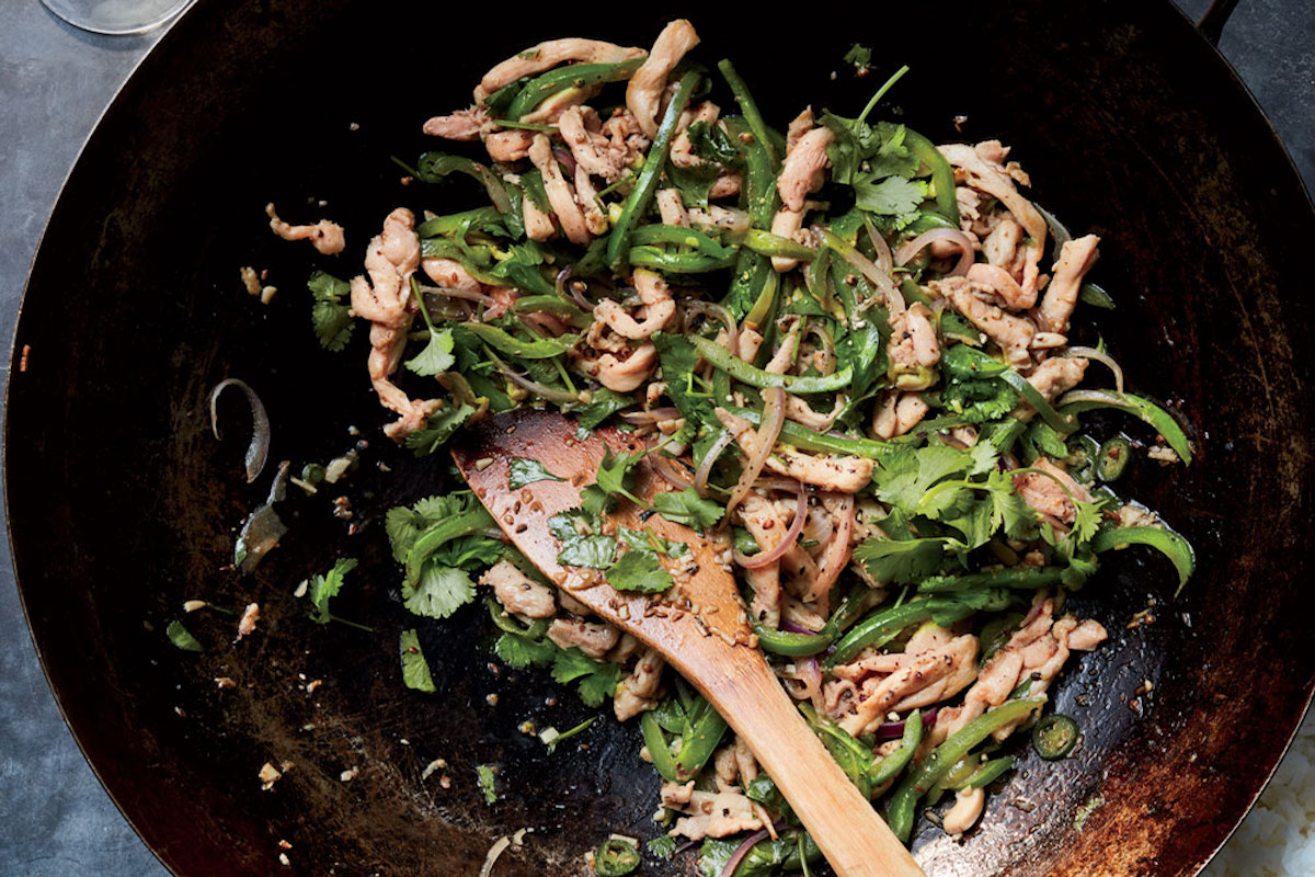 Un simple salteado de pollo mezclado con sabores verdes como el cilantro, el comino y los chiles serranos, combina perfectamente con las notas más matizadas del sauvignon blanc.
