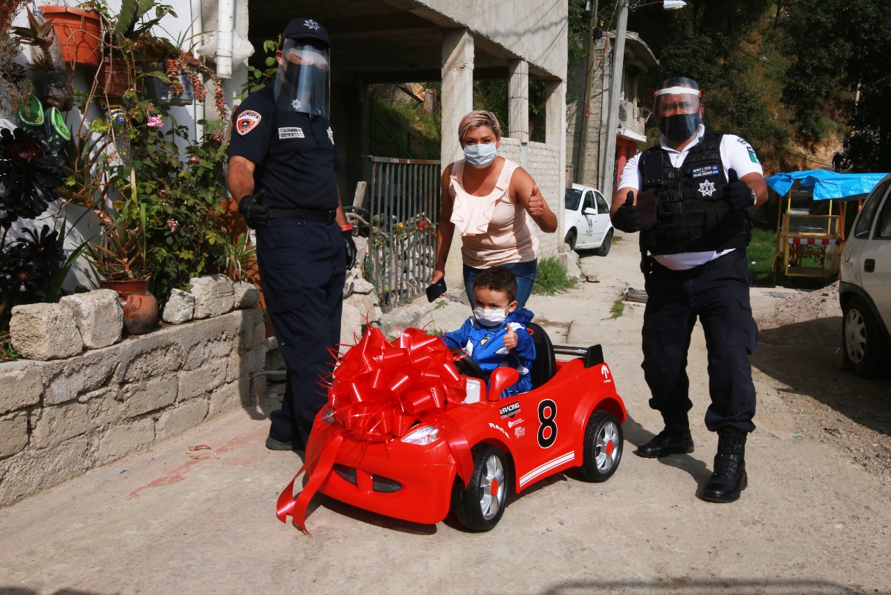 Dante Samael Emmanuel Cruz Hernández y Andry Santiago Gaona Pastén recibieron en sus hogares un carro eléctrico, cada uno, luego de acumular la mayor cantidad de votos en la página oficial del Gobierno de Naucalpan.