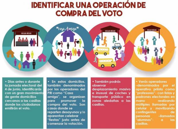 El manual que Andrés Manuel López Obrador compartió en su cuenta de Twitter consiste en una infografía que permitirá a la ciudadanía identificar una operación de compra del voto y cómo proceder pacíficamente ante ello.