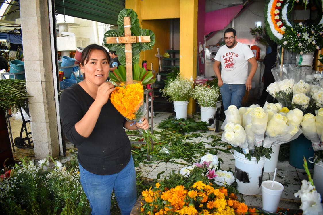 En Naucalpan, mientras los muertos descansan, los locatarios trabajan y es que, en estas fechas, el mercado se mueve las 24 horas del día. Es el caso de María Guadalupe, quien durante las últimas semanas ha estado llegando a la cabecera municipal a las 4:00 de la mañana con cargamentos de flor de cempasúchil, provenientes de la Central de Abastos de Iztapalapa.