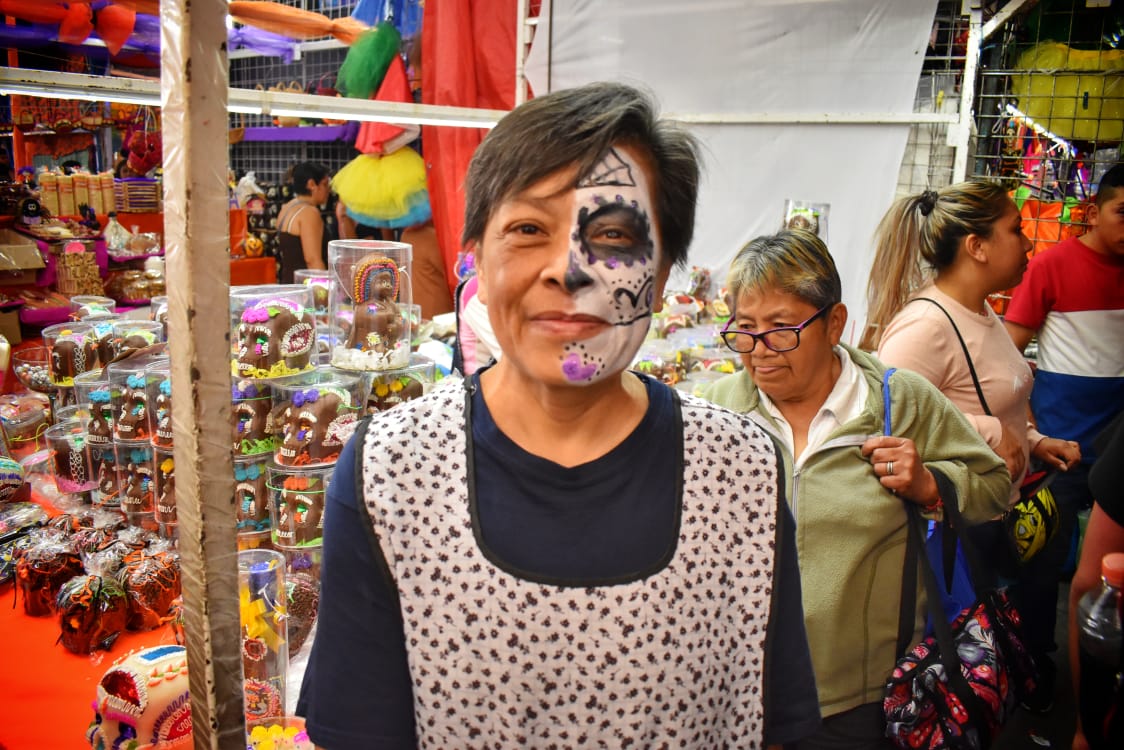Para quienes no simpatizan con las ofrendas y las ceremonias más tradicionales, también se encuentra la oferta del maquillaje y los disfraces. No basta más que un breve recorrido entre los más de 600 locales del mercado para hallarse una, dos, cinco o hasta veinte catrinas.