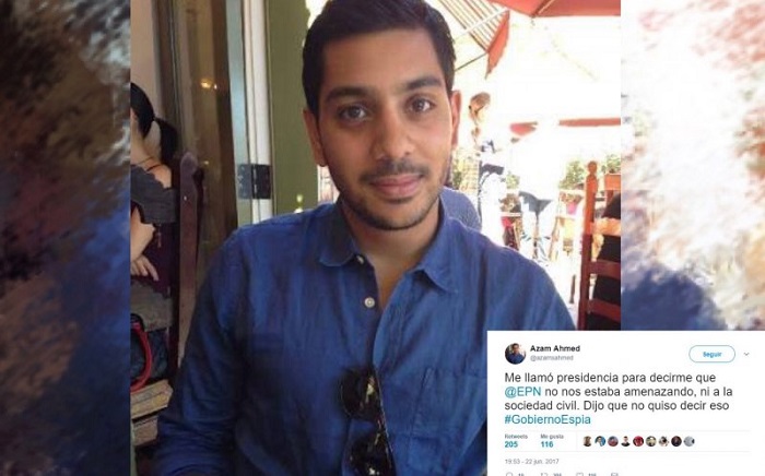 Así pues, Ahmed asestó en Twiter tremendo revés contra el copetón: “No estoy 100% seguro pero creo que el presidente acaba de ordenar una investigación contra la sociedad civil y el New York Times por la historia sobre espionaje #GobiernoEspia”.