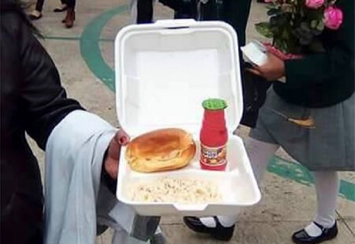 Difundieron fotos e donde se muestra el desayuno prometido por el priísta, el cual era un pan tipo hojaldra, sopa fría y una bebida saborizada tipo Frutsi, pero más económica, lo anterior servido en un plato de unicel, hecho que decepcionó y enfureció a los padres.