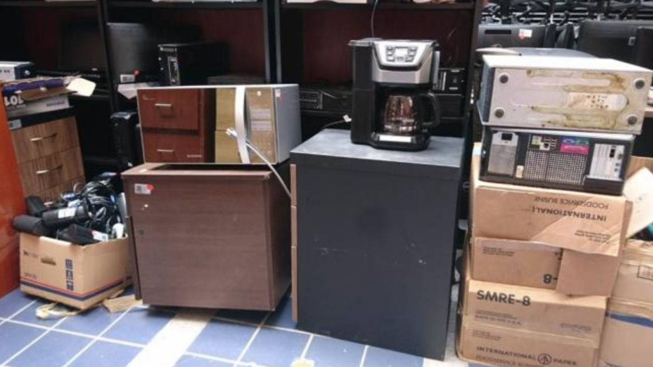Televisores, escritorios, teléfonos, archiveros, faxes, impresoras, hornos de microondas, sillas y cafeteras son algunos de los cachivaches que el PRI ya no utilizará al ver reducidas sus oficinas y personal, y que puso en exhibición para que cualquier grupo parlamentario, con solo llevar los datos de la oficina y el diputado, pueda quedarse con ellos.