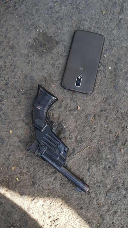 Al momento de la situación los elementos al ver que este sujeto estaba asaltando, a estas personas, le indicaron que se detuviera y bajara el arma con la que estaba cometiendo la fechoría pero al verlos dirigió su arma hacia los policias y estos repelieron la agresión y le dispararon también, quedando tirado en el asfalto, quien vestía pantalón beige, camisa azul marino y tenis negros y a un costado quedó su arma de fuego, tipo revolver de color negro con cachas negras , asi como un teléfono celular de color negro.