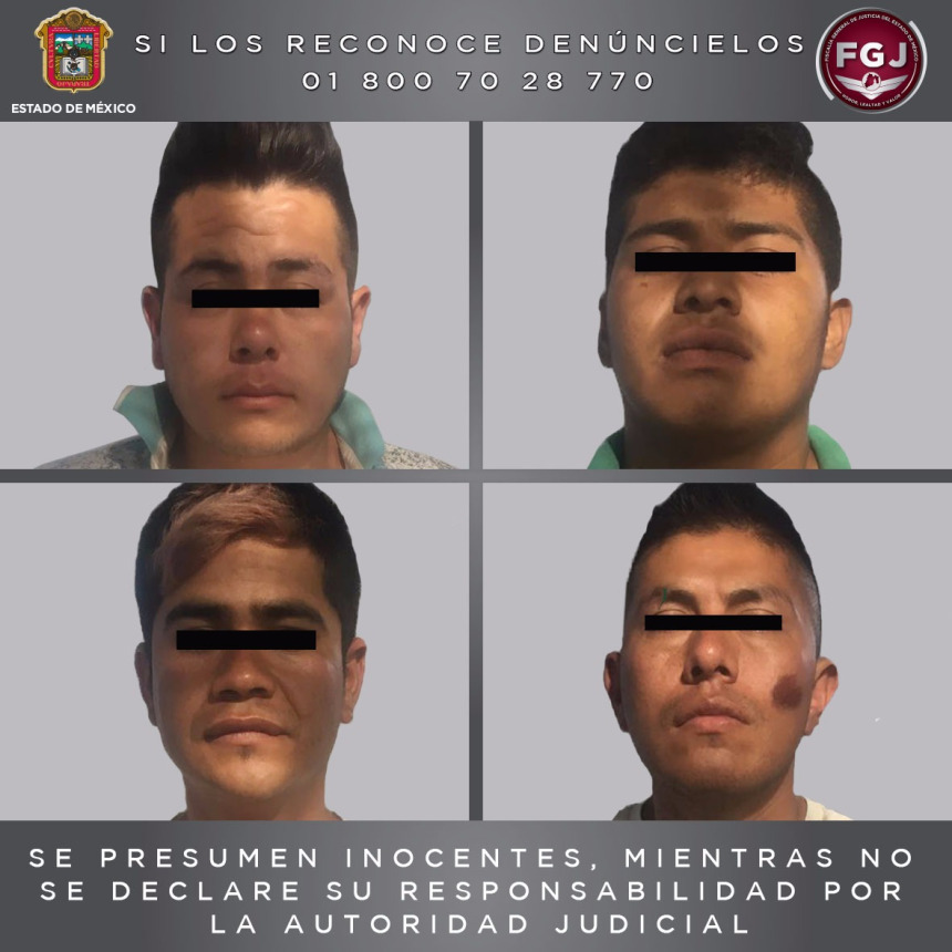 Los probables asaltantes fueron identificados como César Enrique “N”, de 30 años de edad; Efrén David “N”, de 18 años; Ricardo “N”, de 24 años, y Edgar “N”, de 35 años.