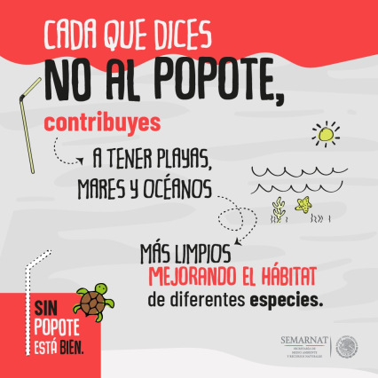 Con el propósito de reducir el uso de popotes y de plásticos en general, la Secretaría de Medio Ambiente y Recursos Naturales (Semarnat) lanzó la campaña “Sin popote está bien”, a través de la cual se informa a la sociedad sobre el impacto ambiental que causa este tipo de productos.