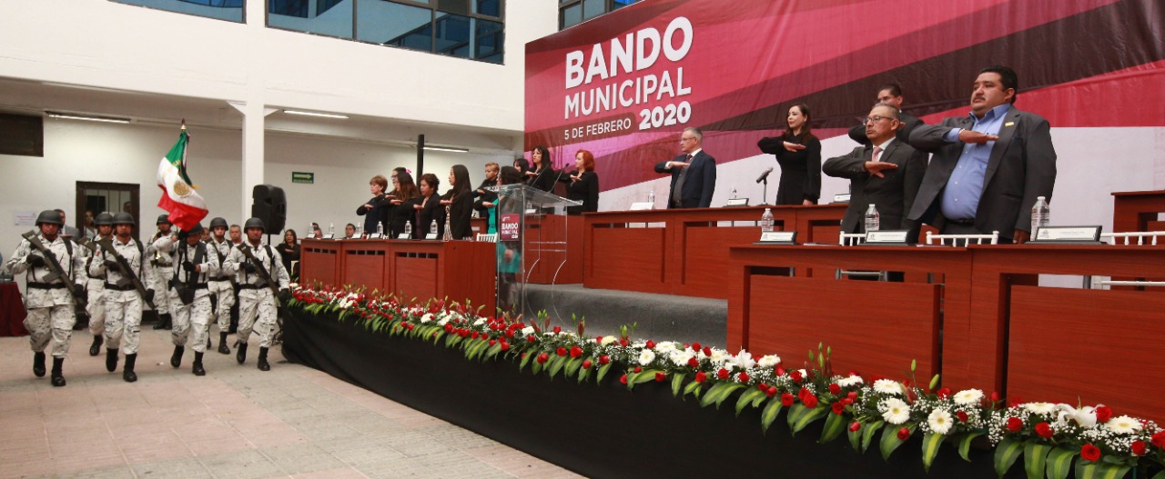 La Presidenta Municipal, Patricia Durán Reveles, promulgó el Bando Municipal 2020 en una ceremonia en la que estuvo acompañada por los integrantes del Cabildo, el Secretario del Ayuntamiento, Arturo Joaquín Colín, así como el Subsecretario de Desarrollo Metropolitano del Gobierno estatal, Pablo Basáñez.