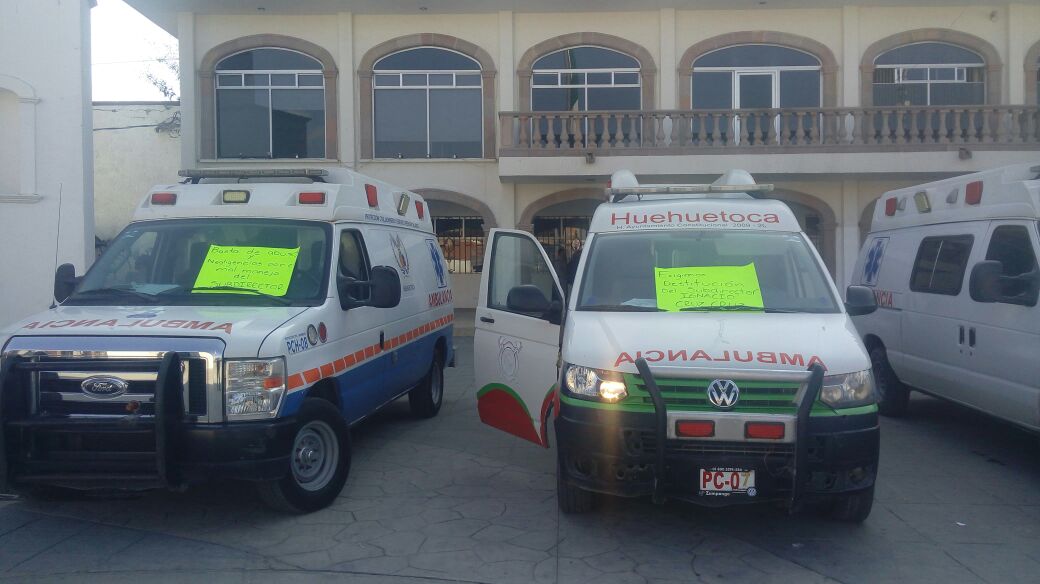 Durante casi dos horas personal de auxilio colocó tres ambulancias en la explanada del Palacio municipal, y colocó cartulinas sobre los parabrisas de las unidades en las cuales exigieron la destitución de Ignacio.