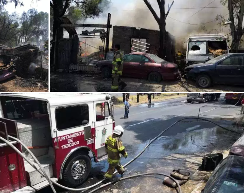 Elementos de la Dirección de Protección Civil y Bomberos de Texcoco, laboraron por mas de dos horas para combatir el fuego en un deshuesadero, ubicado sobre la carretera Federal México-Texcoco, a la altura de Montecillos, en donde no se registraron víctimas.