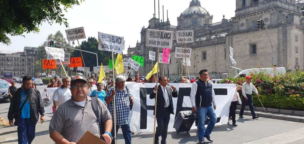 Integrantes de la “Revolución Blanca”, encabezados por su dirigente Emilio Serrano Jiménez explicaron que explicó que la semana pasada acudieron al Congreso de la CDMX, para exigir se les explicara el por qué desde enero se les suspendió el pago de la pensión alimentaria del gobierno del Distrito Federal que, afirman, por ley les corresponde a los adultos mayores domiciliados en la CDMX.