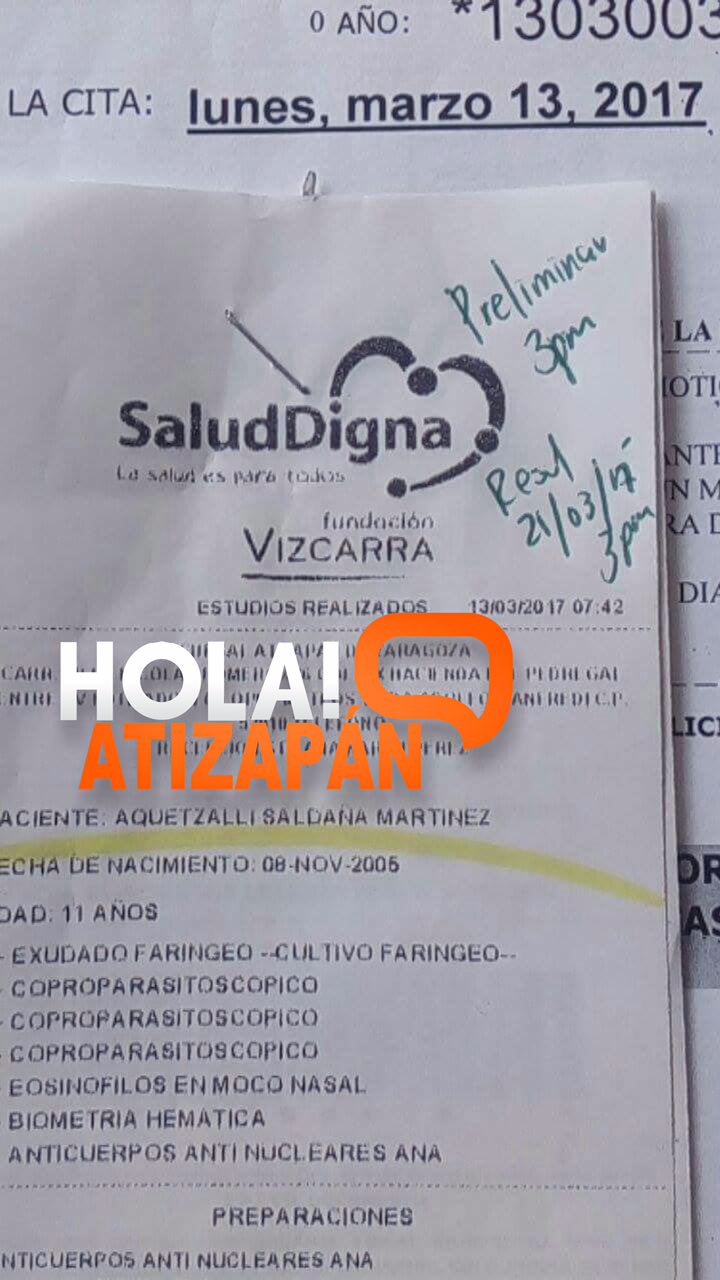 Como ya es costumbre te dejamos el texto integro de esta vecina que tiene una cita desde agosto del año pasado y la citan el dia 13 de marzo de este año y simplemente para decirle que NO HAY MATERIAL Y NO SABEN HASTA CUANDO!! para hacerle sus estudios.
