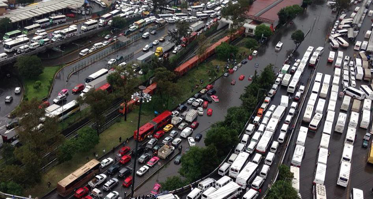 El paradero de los Indios Verdes, ubicado al norte de la Ciudad de México, volvió a estar literalmente en el ojo de huracán tras ser el blanco de las fuertes lluvias que dejaron completamente inundadas sus instalaciones.