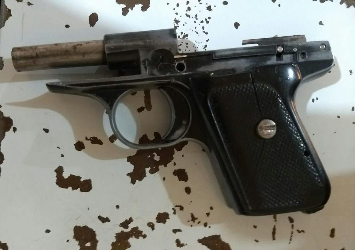A quien dijo llamarse Erick Geovanni “N” de 24 años de edad procedente de Prados Ixtacala se le encontró entre sus pertenencias un celular marca Motorola color amarillo con negro, un celular LG color gris, así como un arma de fuego cromada con cachas de plástico color negro que no contaba con marca, de lo cual no quiso explicar la procedencia.