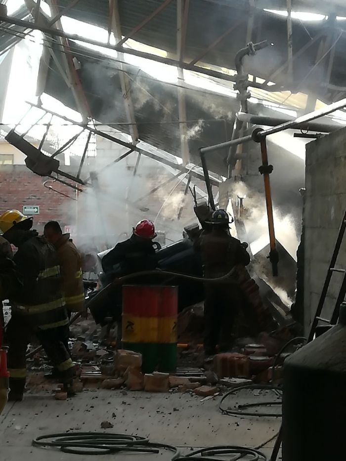 Reactor de la empresa mencionada hace explosión produciendo una nuble blanca en el lugar, no se reportan lesionados solo daños a las láminas del techo de la nave industrial.