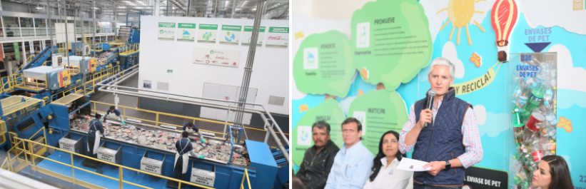 En su oportunidad, Alejandro Molina, Presidente del Consejo de Administración de PetStar, dijo que esta empresa tiene la capacidad de reciclar 3 mil 100 millones de botellas de PET al año, y como parte de su política de empresa socialmente responsable, trabajan en un nuevo sistema de acopio que les permite recuperar el 70 por ciento de las botellas que se colocan en el mercado.
