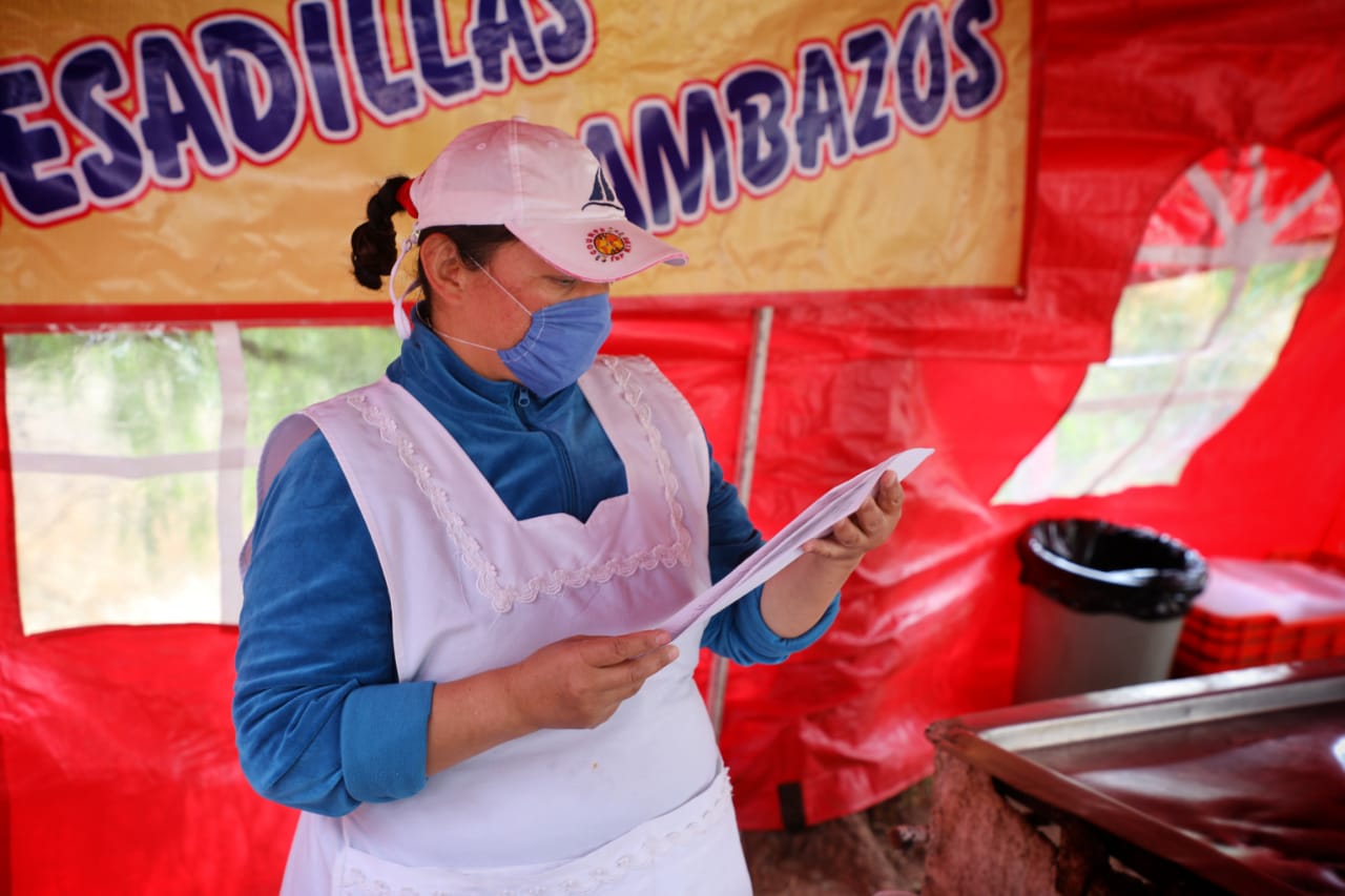 Para evitar concentración de personas, también se instruyó a los comerciantes de alimentos preparados a retirar las mesas o asientos para indicar a los clientes que no se permite el consumo en los locales. Además, se les solicitó colocar cartulinas para indicar la venta de “comida solo para llevar”.
