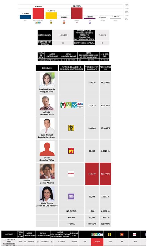 El Instituto Electoral del Estado de México dio a conocer los resultados de los conteos rápidos que se realizaron una vez que cerraron las casillas y que los funcionarios realizaron los conteos respectivos.