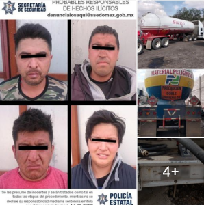 Al realizar una inspección, desde el exterior del predio se aprecian ocho vehículos, dos con reporte de robo; cinco tracto camiones y tres tanques tipo salchicha, entre estos se encontraban las que trasportaban 90 mil litros de gas LP con un valor de seis millones de pesos y que los probables responsables estaban traspasando a otro tanque.