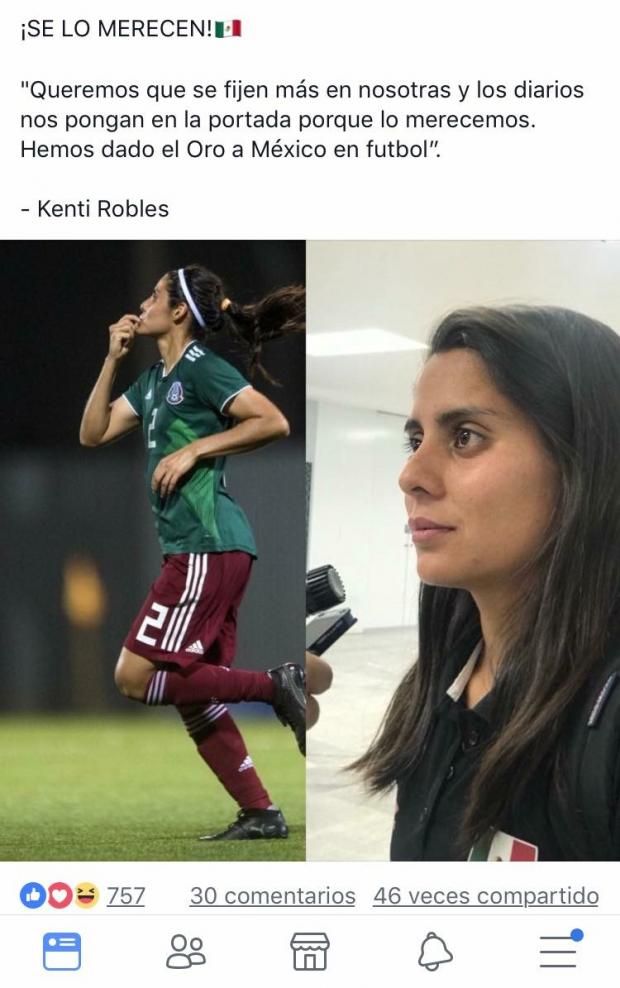 Una publicación citaba a Kenty Robles diciendo: “Queremos que se fijen más en nosotras y los diarios nos pongan en portada porque lo merecemos. Hemos dado el oro a México en futbol”, y los comentarios machistas no se hicieron esperar.