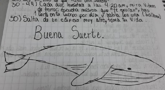 Consta de unas 50 pruebas en total, algunas de ellas sencillas que podrían ser parte de un juego como hablar con una persona del grupo por Skype o quedar con ella en persona. Pero estos son los más suaves y se intercalan con los que te contamos a continuación. El resto de acciones son a cada cual más macabra. Sin entrar en muchos detalles, incitan a la autolesión, la exclusión social hasta llegar al suicidio que es la prueba número 50.