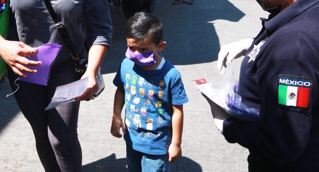 Policías municipales del área de Proximidad repartieron 600 cubrebocas en San Bartolo, El Molinito y en las afueras del Mexipuerto Cuatro Caminos, como parte de la estrategia para mitigar los contagios de COVID-19.