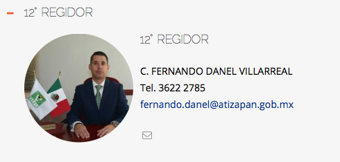 El funcionario de nombre FERNANDO DANEL VILLARREAL se desempeña actualmente como Decimo Segundo Regidor Suplente en el municipio de Atizapán de Zaragoza, estado de México.