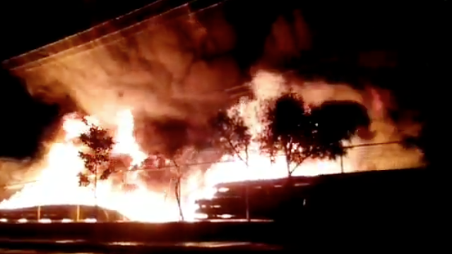 Las llamas consumieron ductos de PVC, ubicados en una cancha de fútbol y de acuerdo con autoridades una persona provocó el fuego donde las llamas alcanzaron al menos 30 metros.