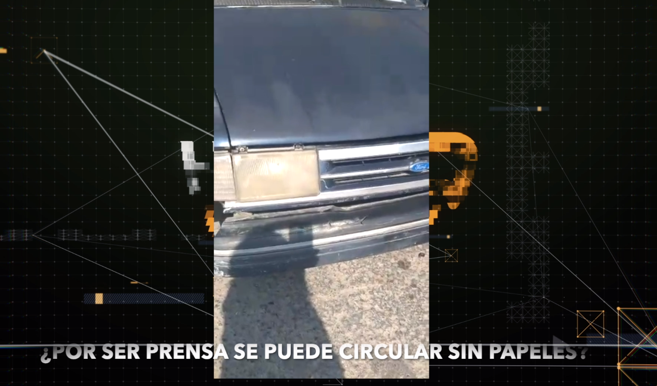 Al ser detenido se observa como empieza a grabar a los oficiales (cosa que no es un delito) PERO al verse totalmente evidenciado por conducir un automóvil que claramente NO DEBE CIRCULAR POR LA AUSENCIA DE DOCUMENTOS, comienza a excusarse por ser segun el “PRENSA”.