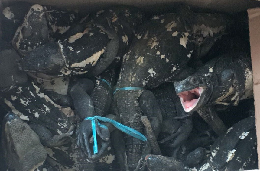 Según se informó, los elementos de la Policía Federal Ministerial aseguraron dos cajas de cartón que contenían iguanas color negro con blanco así como color verde por lo que el hombre fue detenido por la probable comisión del delito de posesión simple de especies en peligro de extinción y protegidas por la NOM SEMARNAT-059-2010 y en CITES.