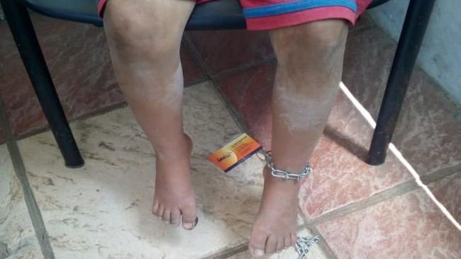 Blanca Arely “N”, de 8 años de edad, dijo a los policías que constantemente le pegan con el cinturón y la amarran. Arely y su hermana María Guadalupe “N”, de 9 meses, fueron trasladadas al Centro de Justicia para mujeres. La niña mayor presenta una leve herida a la altura del tobillo, aparentemente ocasionada por la cadena.