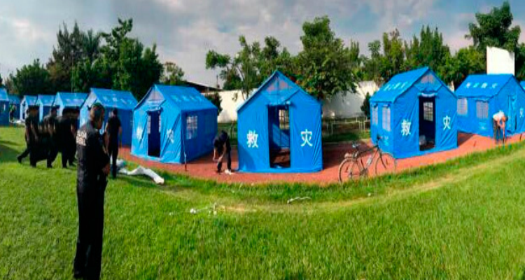 En el refugio ubicado en la Unidad Deportiva “Niños Héroes”, en Jojutla, Morelos, 66 familias fueron reubicadas en las casas de campaña donadas por el gobierno de China a la Federación.