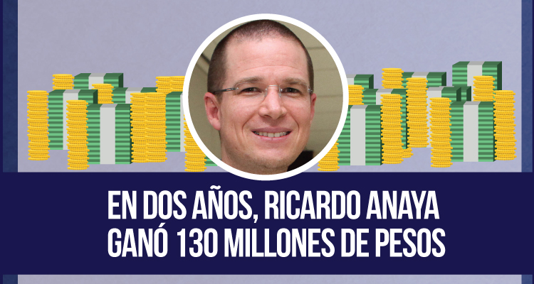 – Por su parte, en 2014 los ingresos de Ricardo Anaya por los cargos que ocupó como Diputado Federal, Asesor, Secretario General y Presidente Interino del PAN ascendieron a 1 millón 803 mil 616 pesos.