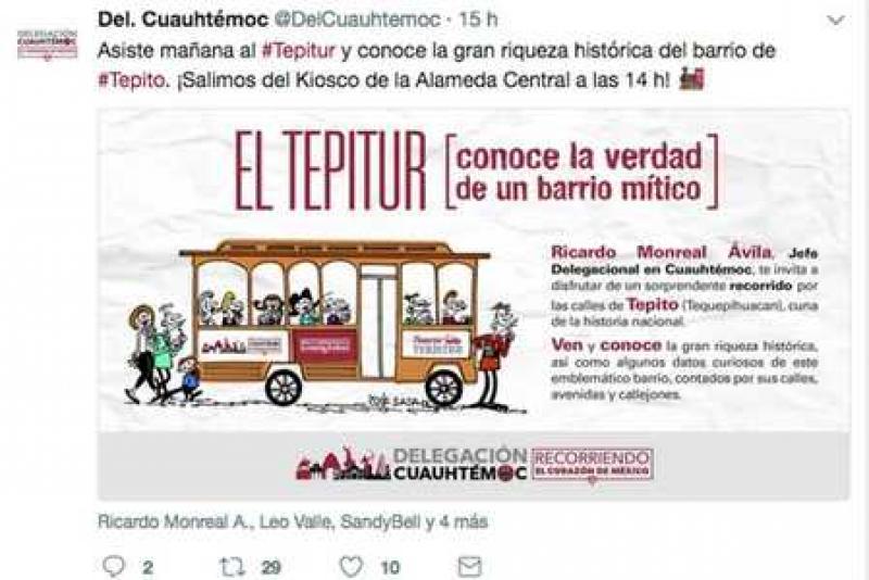 El “Tepitour” saldrá a las 14:00 horas de hoy martes del kiosko de la Alameda Central.