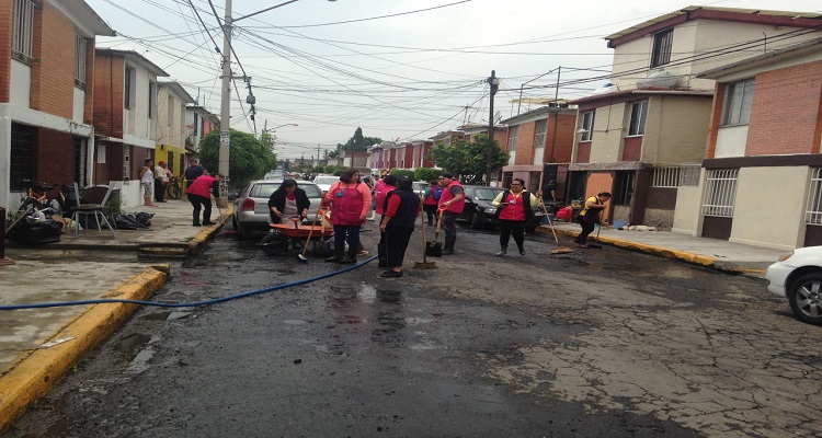 Trabajadores del municipio de Nezahualcóyotl, llegaron con escobas a las calles para ayudar a los afectados y así poder agilizar el proceso de desazolvamiento.