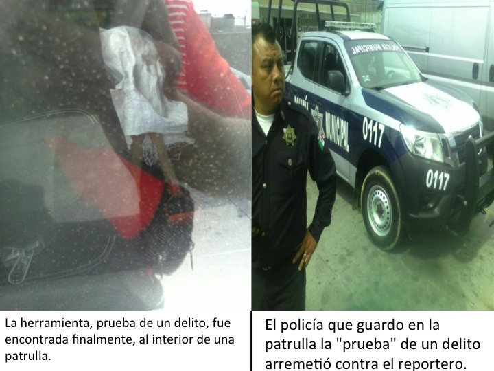 Finalmente, horas después y de manera sospechosa, la “prueba” del delito de robo, es sustraída del Centro de Justicia de La Paz, por parte de un elemento de la policía local, quien introduce el costal con herramientas al interior de la patrulla 0117, hecho que foto documenta el reportero ante el reclamo déspota, grosero, opresor, abusador del uniformado quien arremete en contra del reportero.