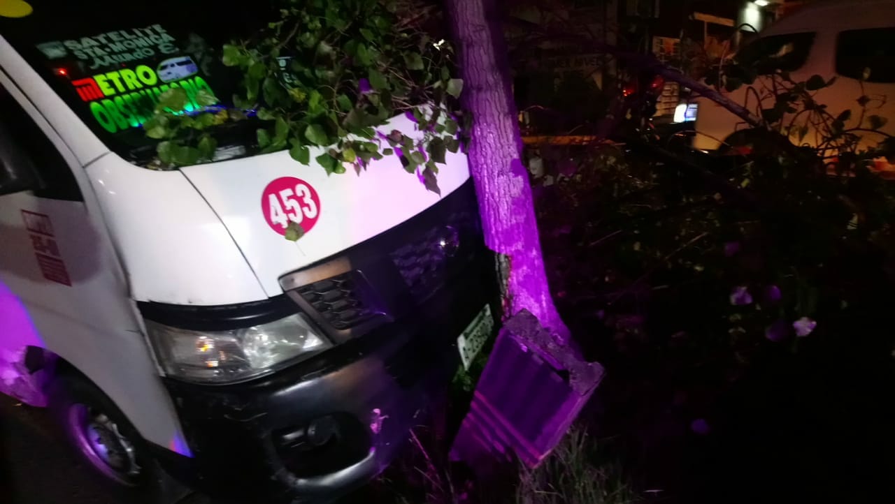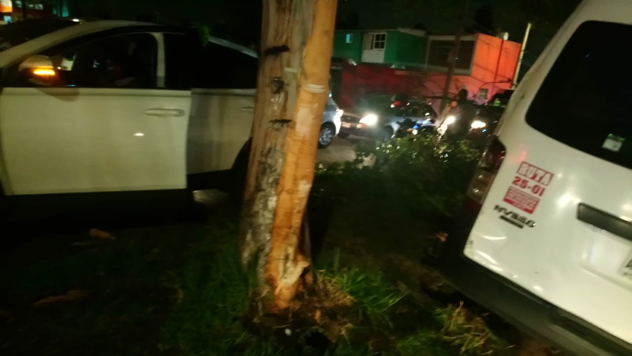 Por falta de mantenimiento preventivo y correctivo e irresponsabilidad de un chofer el cual conducía una camioneta de transporte publico pierde el control y derriba un árbol en la colonia Hogares de Atizapán.