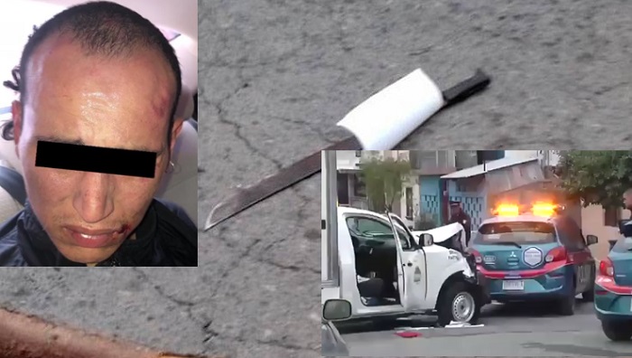 Los efectivos lograron despojarlo del machete y fue detenido.