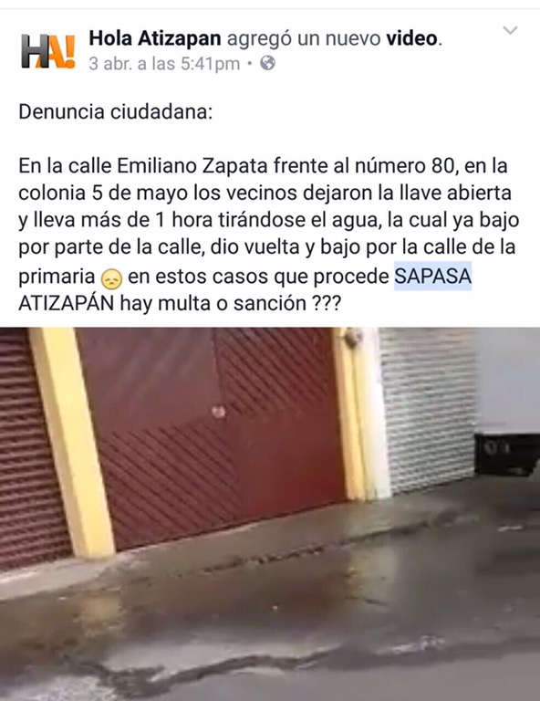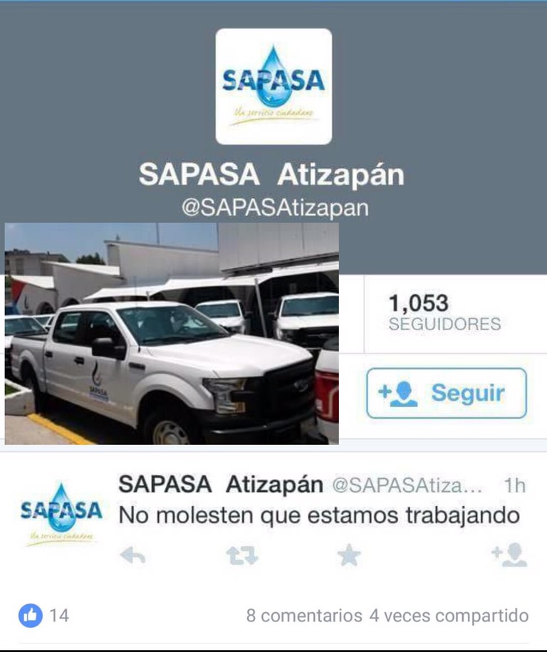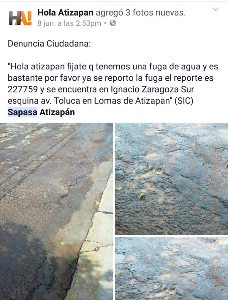 Ante tantas denuncias y reportes ciudadanos que amablemente nos envian los vecinos y que tratamos de atender en base a la publicacion de sus reportes en nuestra Fan Page para darles voz a sus denuncias acerca de la falta de atencion por el organismo publico de agua de S.A.P.A.S.A. en Atizapan de Zaragoza, decidimos hacer una nota más completa para evidenciar algunas de tantas denuncias y reportes donde se nota claramente la poca eficiencia para atender las solicitudes de la ciudadania.
