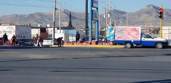 Habitantes de Ciudad Juárez, Chihuahua, ayudaron a un repartidor de pan de Grupo Bimbo, luego de que se le cayera su mercancía desde la camioneta que conducía.