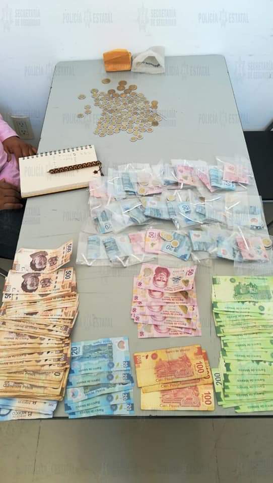 Tras una revisión protocolaria, entre sus pertenencias fue localizado un ticket por un deposito de 38 mil pesos, además del efectivo restante, mismo que ofreció a los efectivos de SS para que no procedieran a su detención.