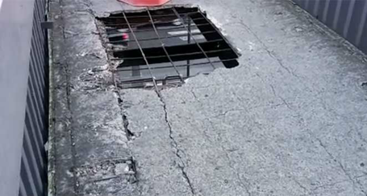 En dicho paso se podían observar hoyos y estructuras metálicas, además cemento se desprendía a la vía rápida donde circulan vehículos.