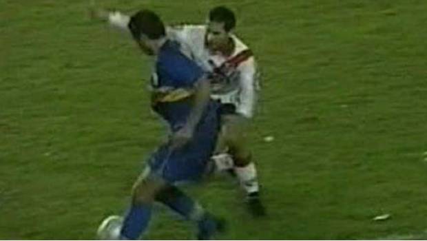 Ahí el mítico y legendario Juan Román Riquelme, entonces diez del Xeneize, ejecutó un magistral túnel a Mario Yepes, pues el habilidoso mediocampista se encontraba pegado a la línea de banda y con la férrea marca del colombiano; no obstante, sacó la chistera y realizó el espectacular caño para sorpresa de propios y extraños.