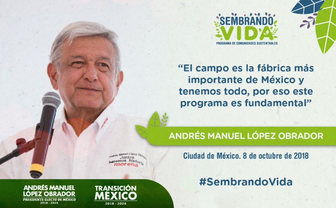 Programa Sembrando Vida arrancará en un primer año, en 2019, con 220 mil empleos en los estados de Chiapas, Veracruz, Tabasco y Campeche. A los agricultores adscritos se les pagará 5 mil pesos mensuales por jornal.