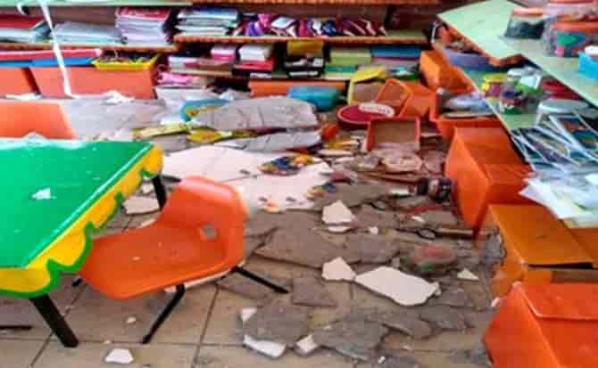 El desplome de una parte del techo en un salón de clases en el jardín de niños Narciso Mendoza dejó saldo de dos menores lesionados que tuvieron que ser hospitalizados en la zona de San Jorge, en la delegación de San Mateo Oxtotitlán.