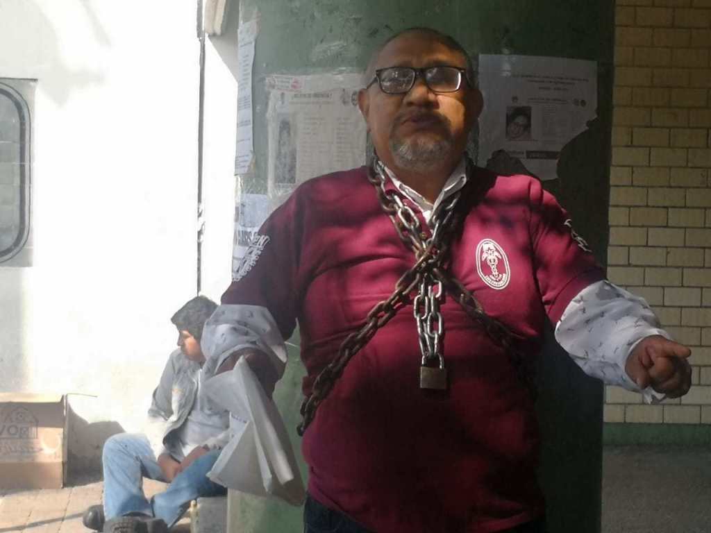 Tras la muerte del joven que era estudiante de Medicina del Instituto Politécnico Nacional (IPN), el padre de la víctima decidio encadenarse para denunciar que el pasado 26 de enero recibió una llamada telefónica del hospital para avisarle que su hijo había ingresado y que presentaba varios golpes.