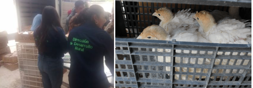 Personal del área de la Dirección de Desarrollo Rural, informaron que las aves y gazapos de conejo ya están vacunados y desparacitados, listos para la crianza en traspatios.