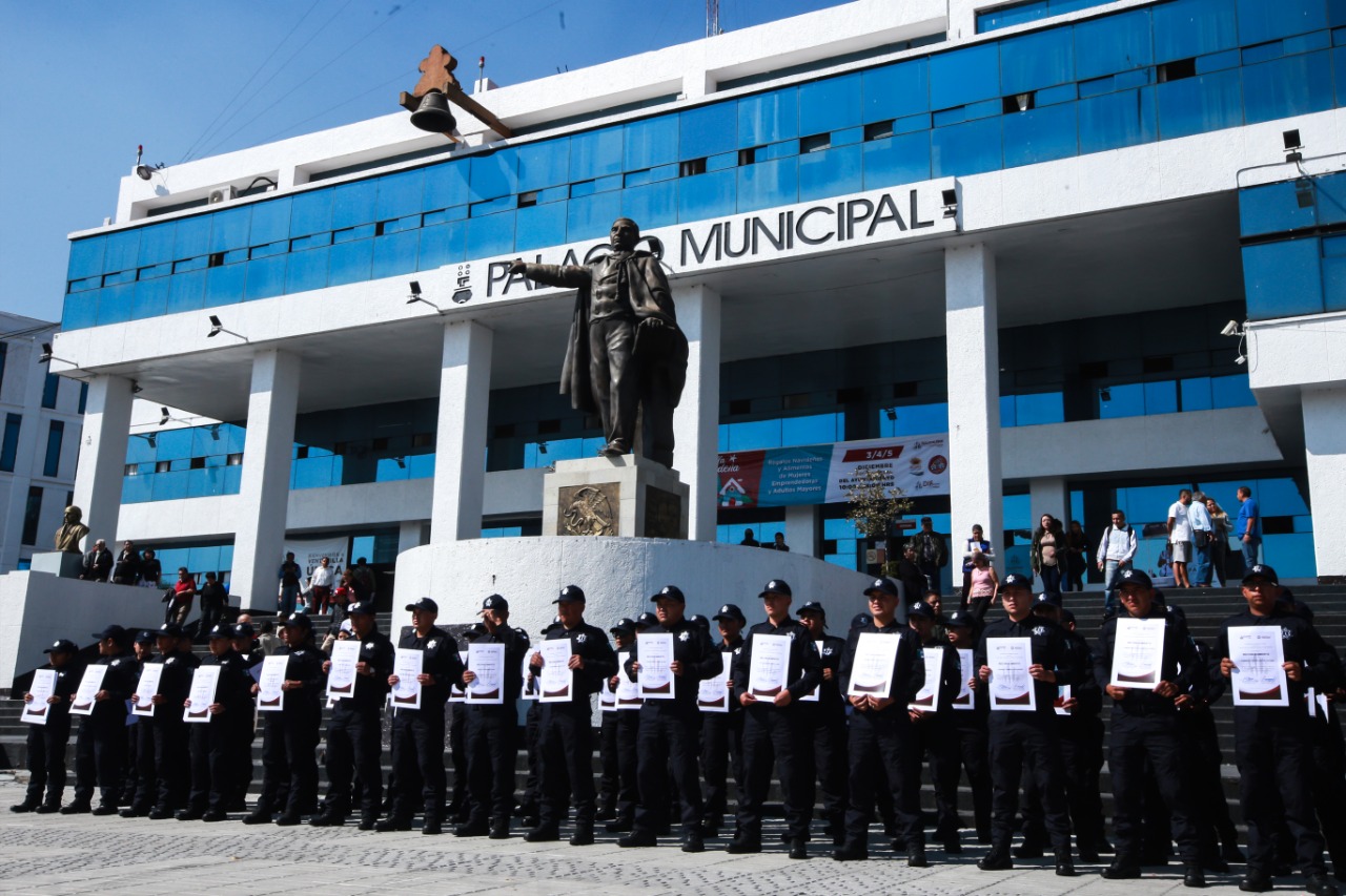 Tras 6 meses de capacitación que implicaron más de mil horas de trabajo, 98 cadetes integrantes de la primera generación de la Academia de Policía recibieron su constancia que los acredita como parte del cuerpo policial de Naucalpan.